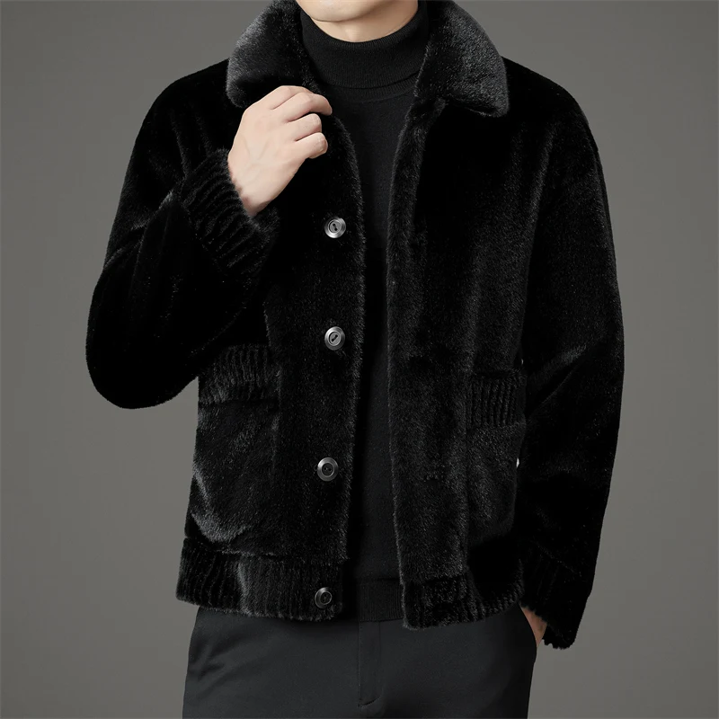 Cheap Price Fashion Reversible Cozy Fake Mink Coat Mens 100% Polyester Faux Fur Coat for Fall Winter Wear